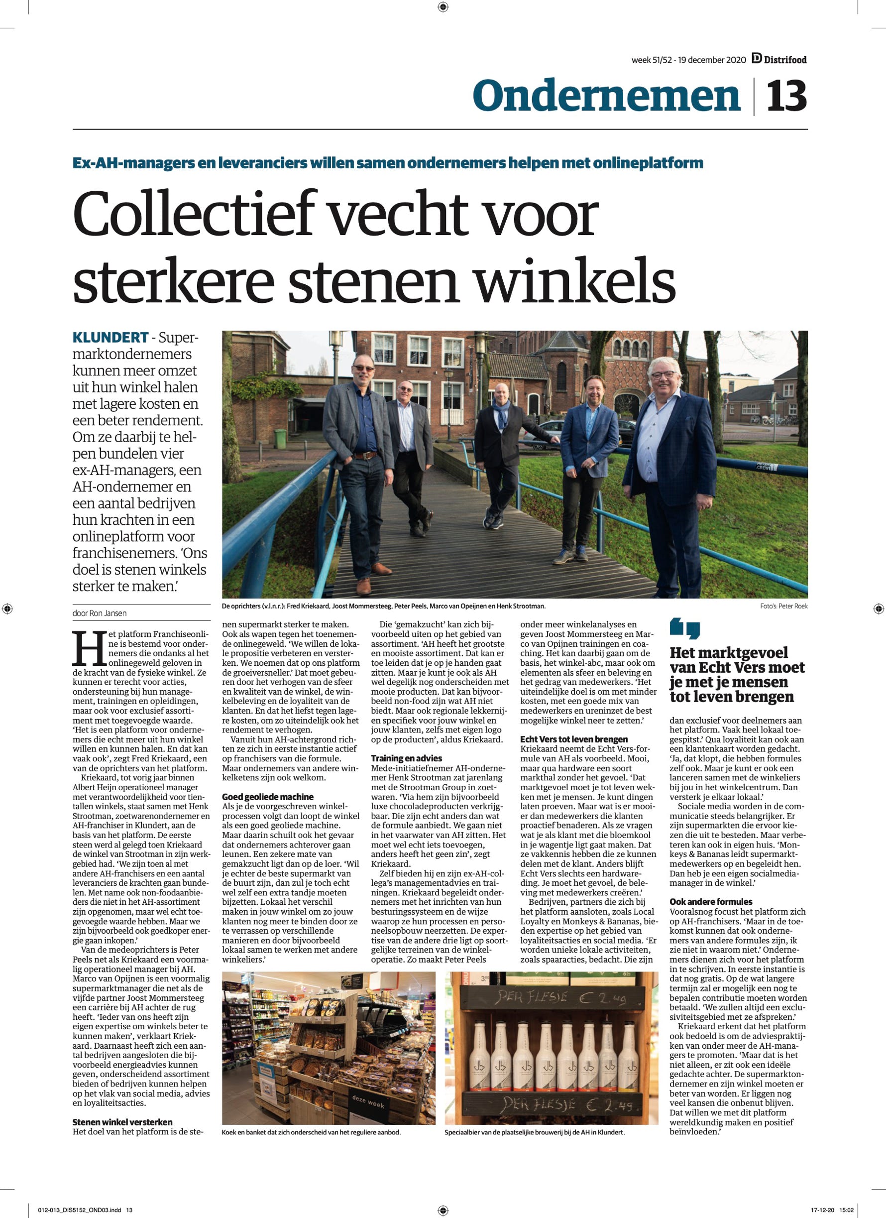 Volgens Kriekaard zijn er op dit moment 12 Albert Heijn-supermarkten van franchisenemers waarvoor hij een model heeft ontwikkeld of nog gaat ontwikkelen. ‘Over twee weken gaat er weer een winkel om en ook in week 8 en 14 van het nieuwe jaar. In totaal zitten er nu 12 in de pijplijn. Het gaat om franchisewinkels in onder meer Schipluiden, Rotterdam, Ridderkerk, Maasland en Bleiswijk. Albert Heijn zelf begint volgens Kriekaard in week 14 van het nieuwe jaar in de filialen met het besturingsmodel.